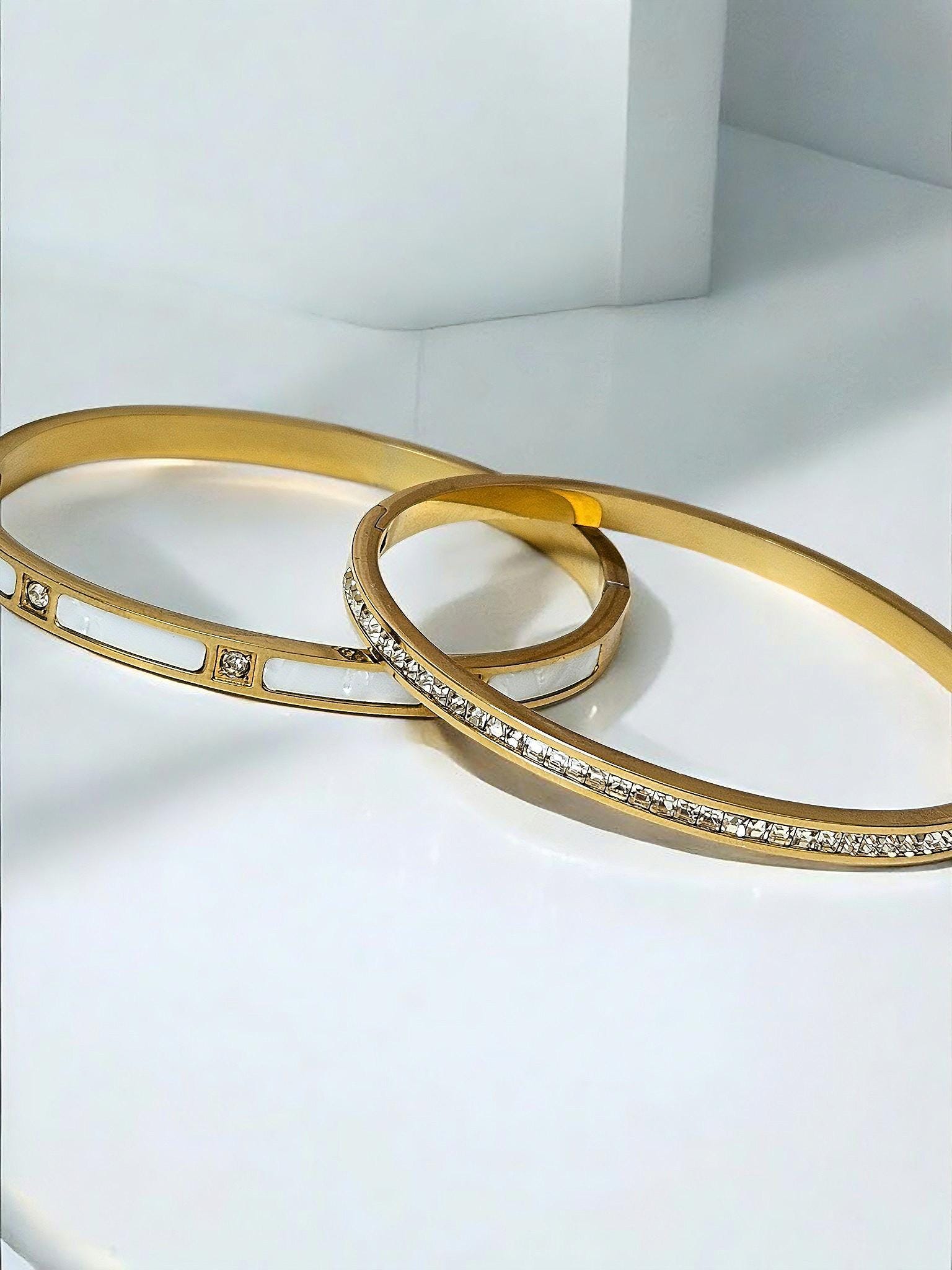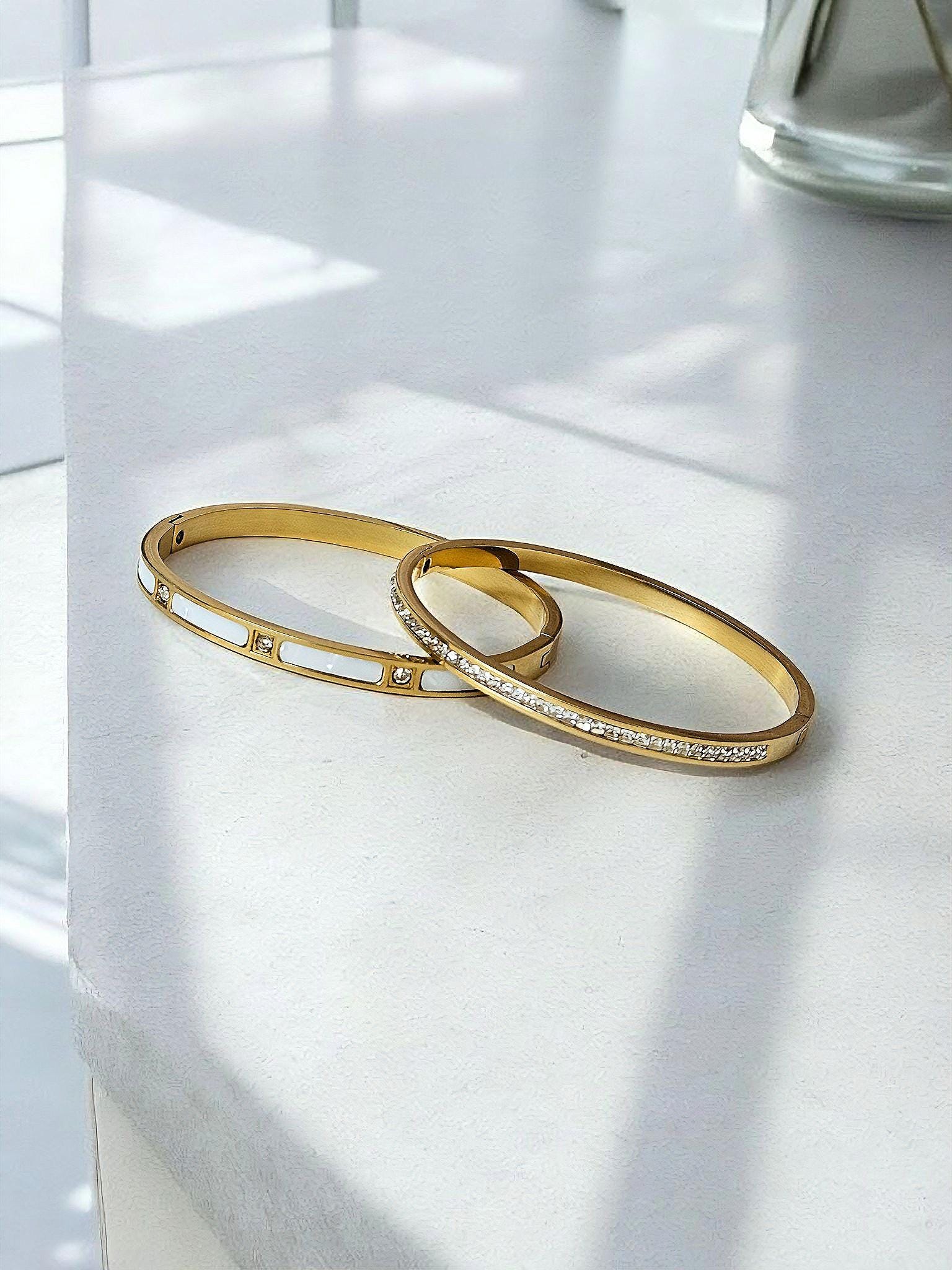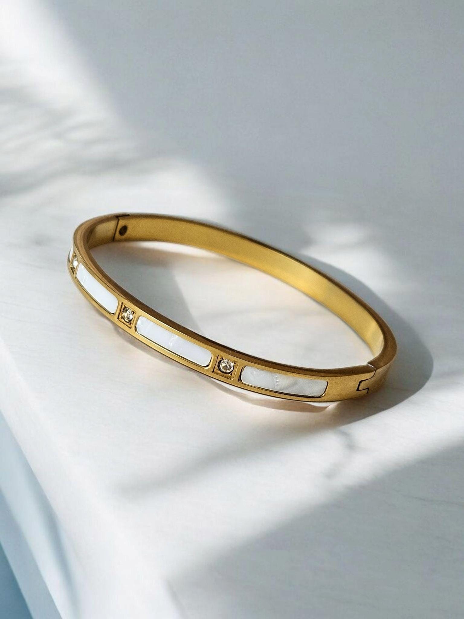 Our Cassie Bangle is classy, bold and eye catching, whether you're dressing up or just elevating your everyday look. It's shell inlay detailing makes it the perfect addition to your holiday wardrobe.