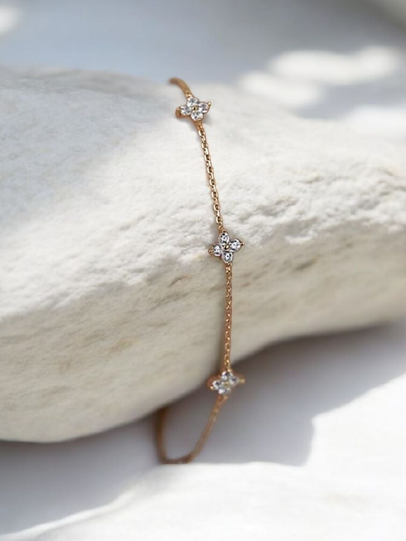 Sweet, subtle and versatile. Our Clover gold chain bracelet is dotted with zircon clovers, giving it a soft, romantic vibe that pairs perfectly with everything.