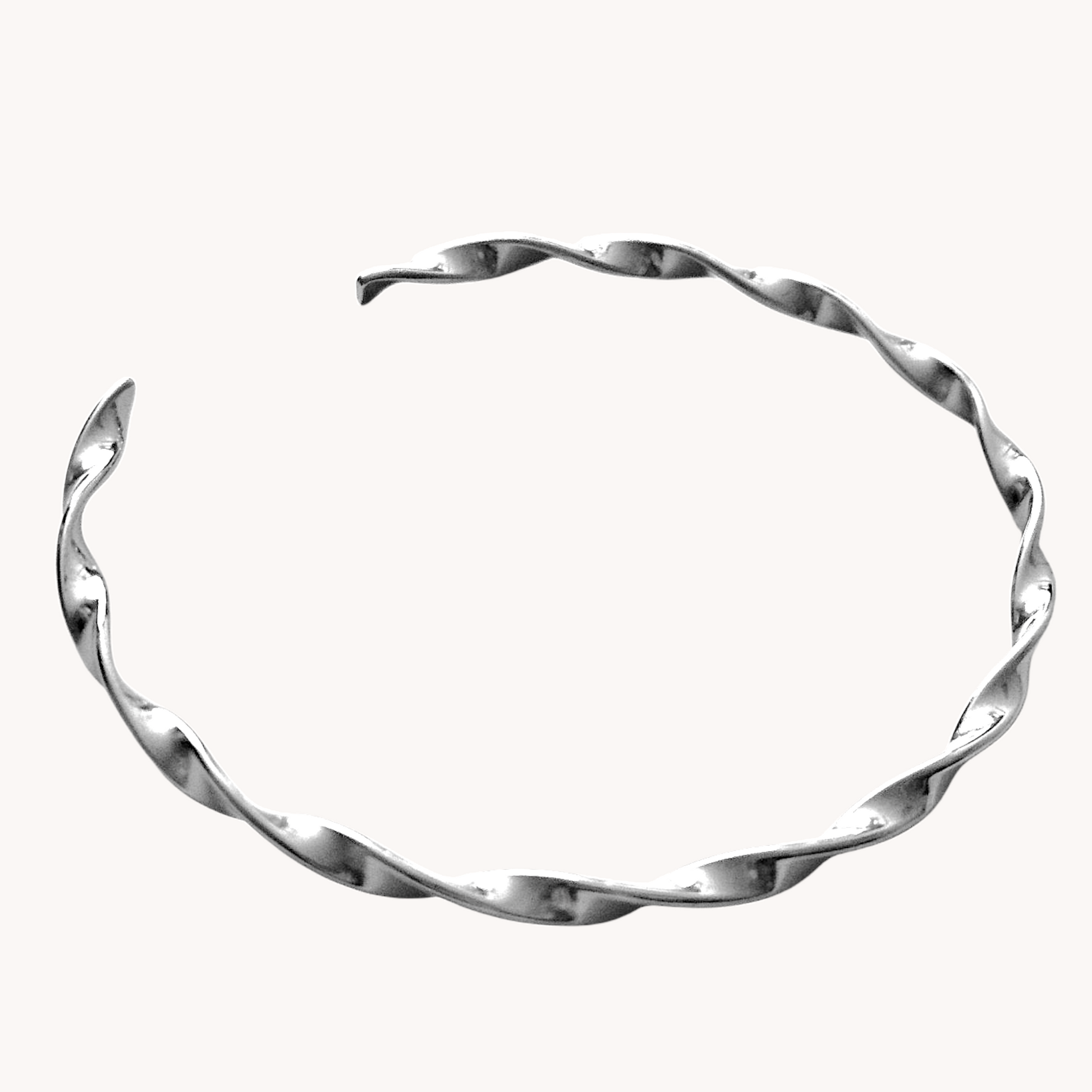 Our Silver Erin Bangle with its twisted design is a great addition to any stack, layer with other bracelets and bangles or wear alone. This bangle is versatile and eye catching.