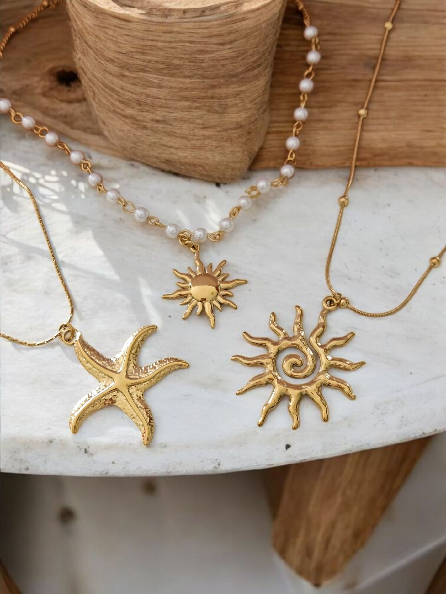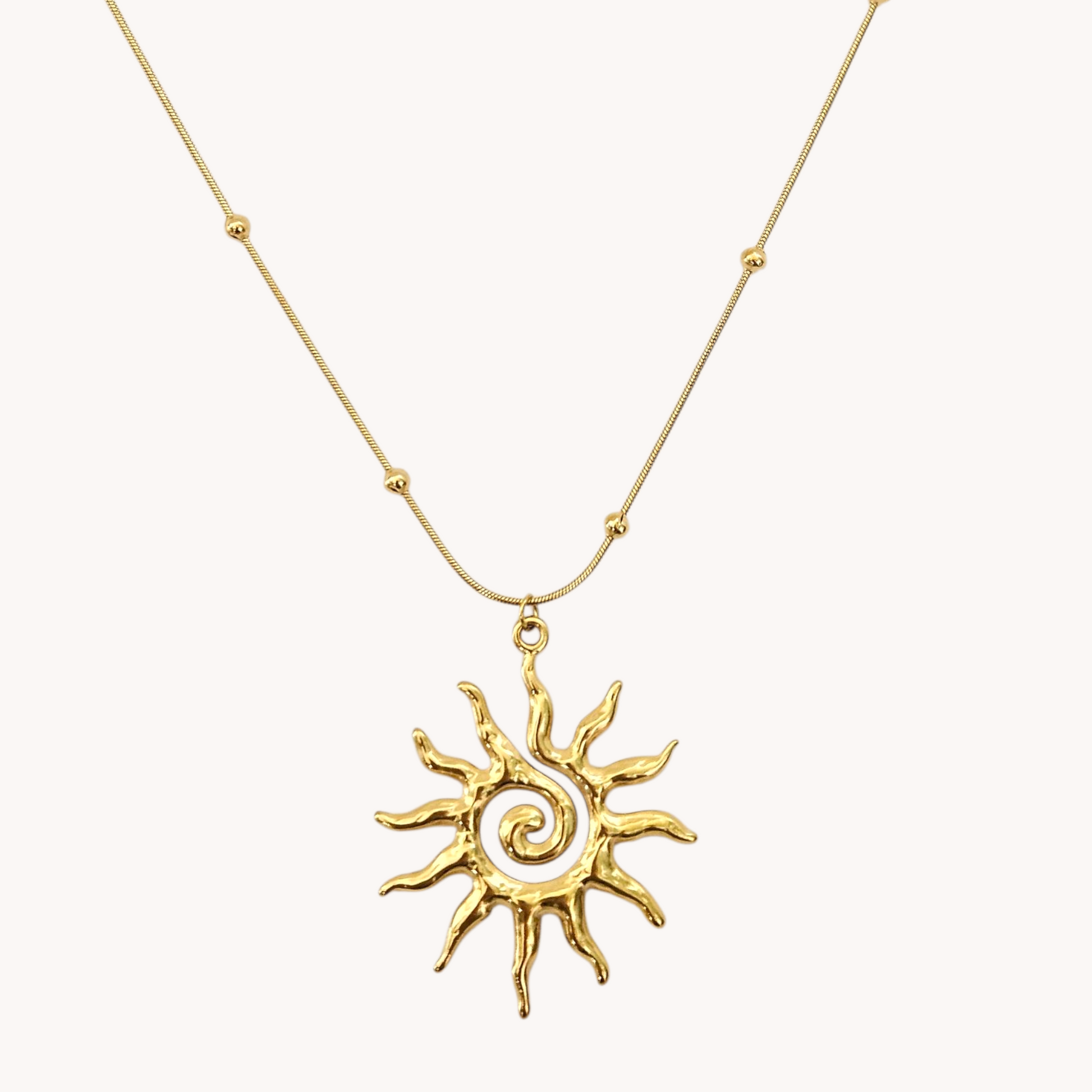 Our Goldie necklace is your new go to statement piece. Bring a touch of sunshine with you wherever you go. This necklace is the perfect addition to your wardrobe, whether its on the beach, out for drinks or to add a bit of brightness to your casual fits, this is the one for you.