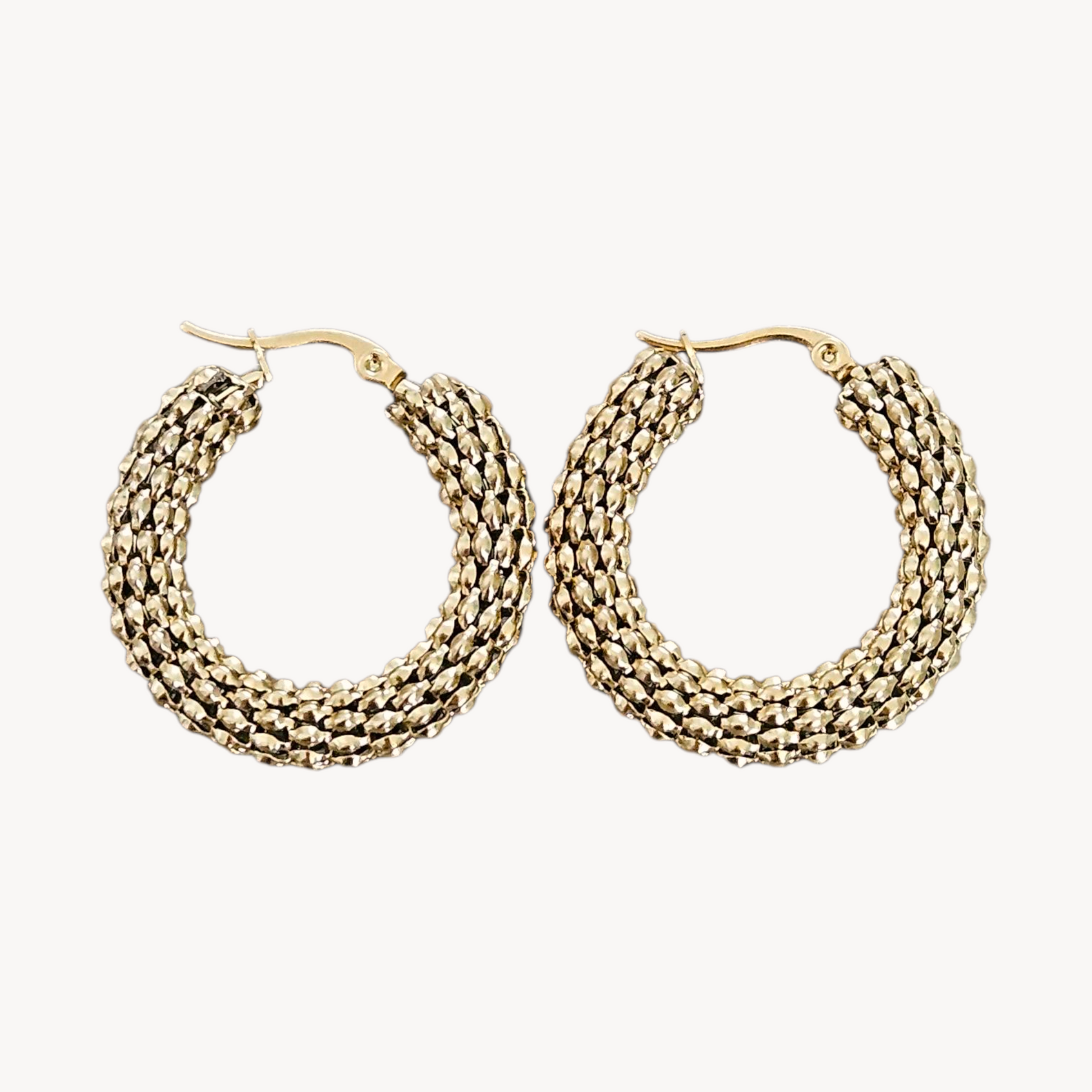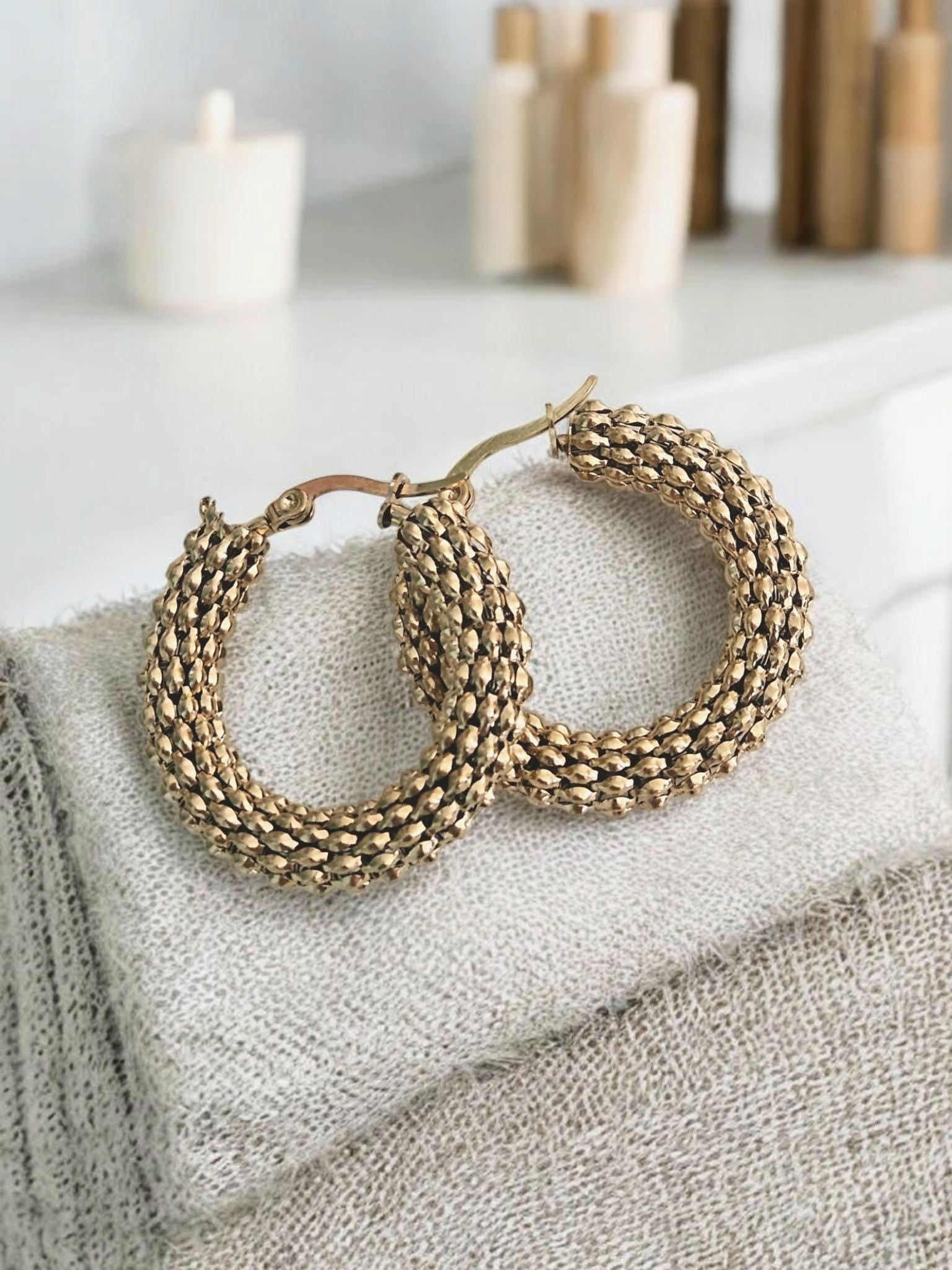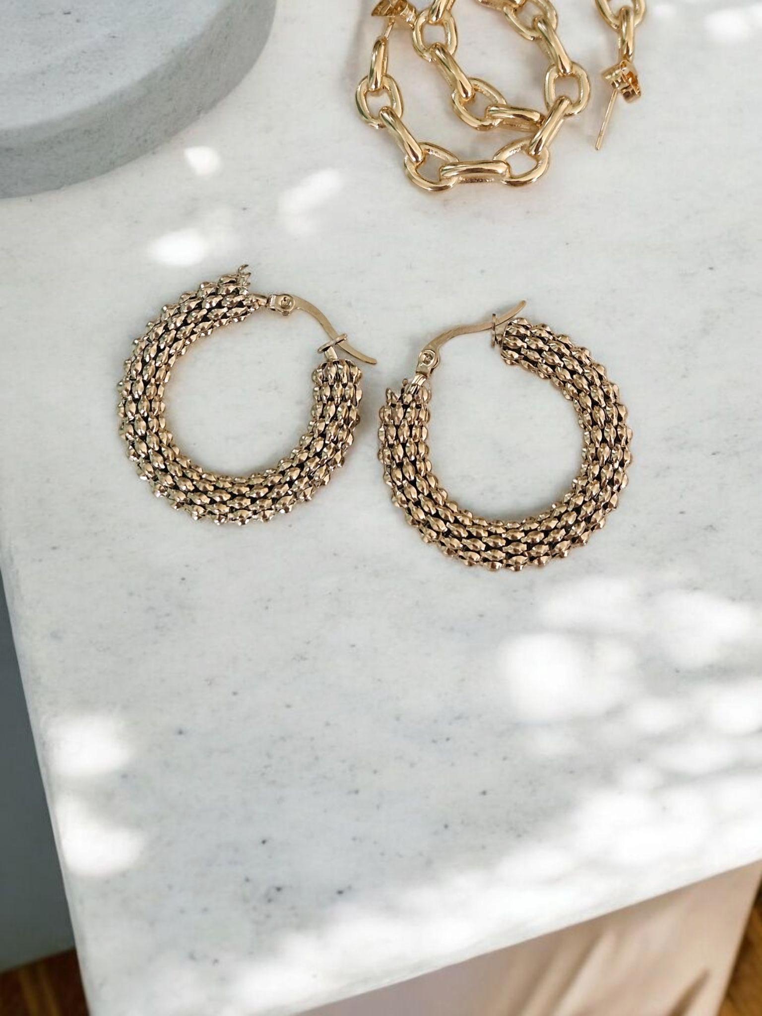 Our Kenna gold textured chunky hoops are all about effortless edge meets everyday glam. Perfect for layering your vibe or letting them do all the talking.