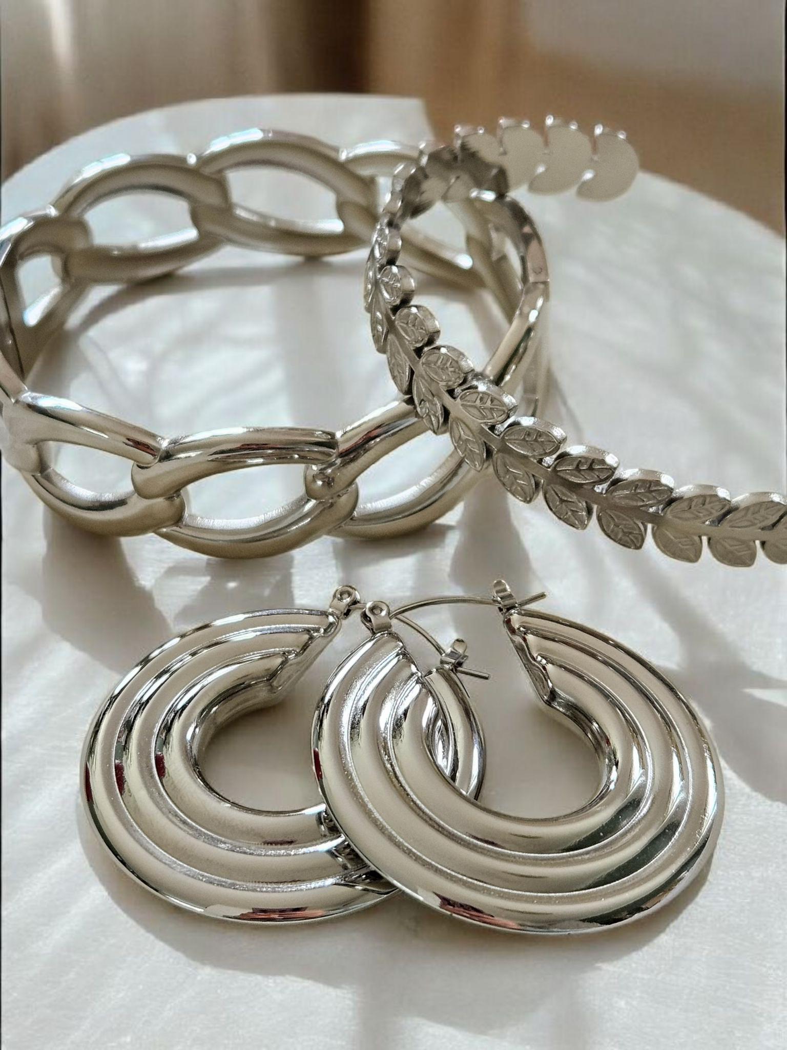 Our Chunky Chain Aria Bangle is the perfect statement piece for both day and night. It's bold, unapologetic, and a little rebellious. Wear it stacked or solo, whatever you do it's guaranteed to make any outfit pop.