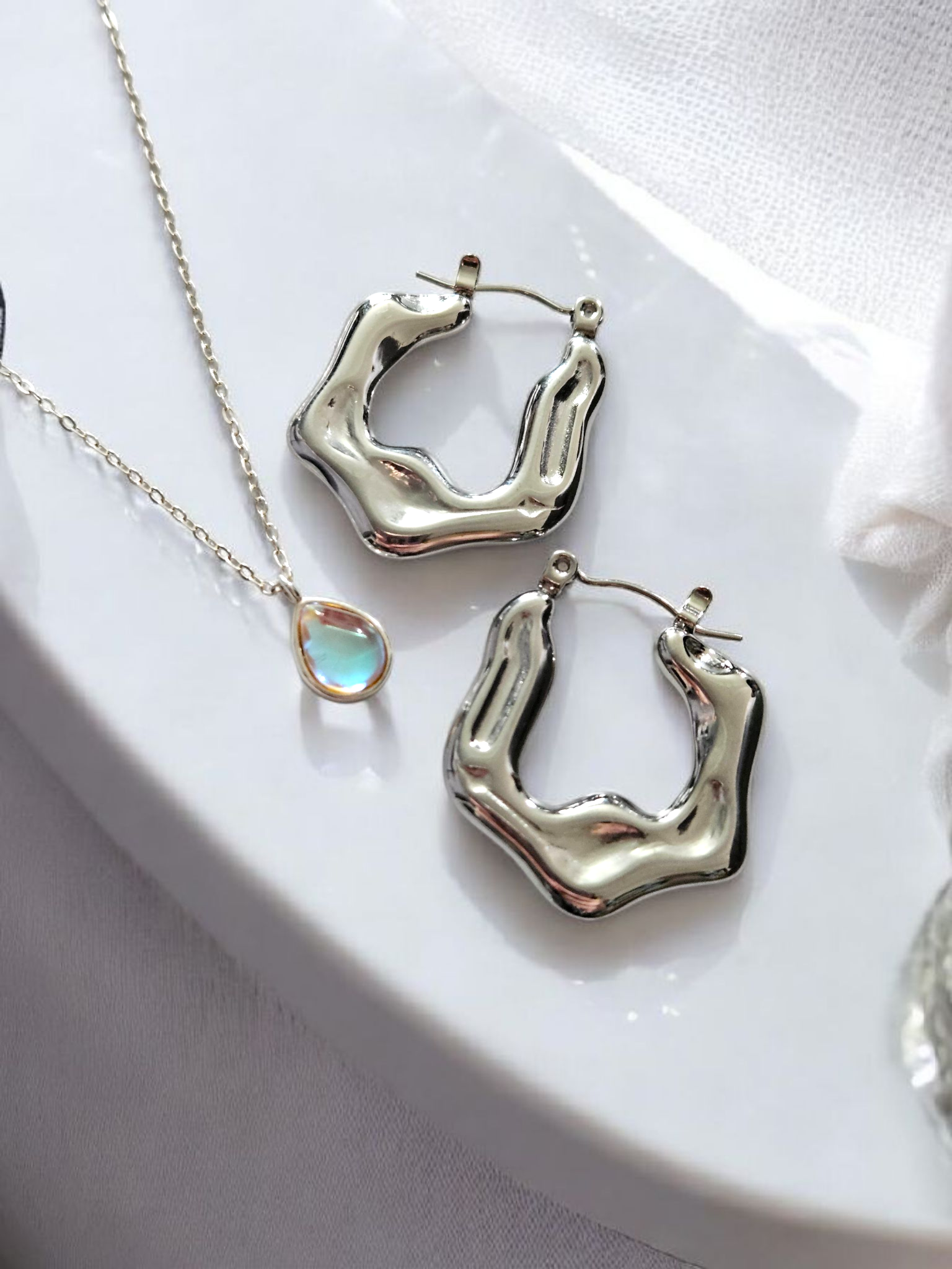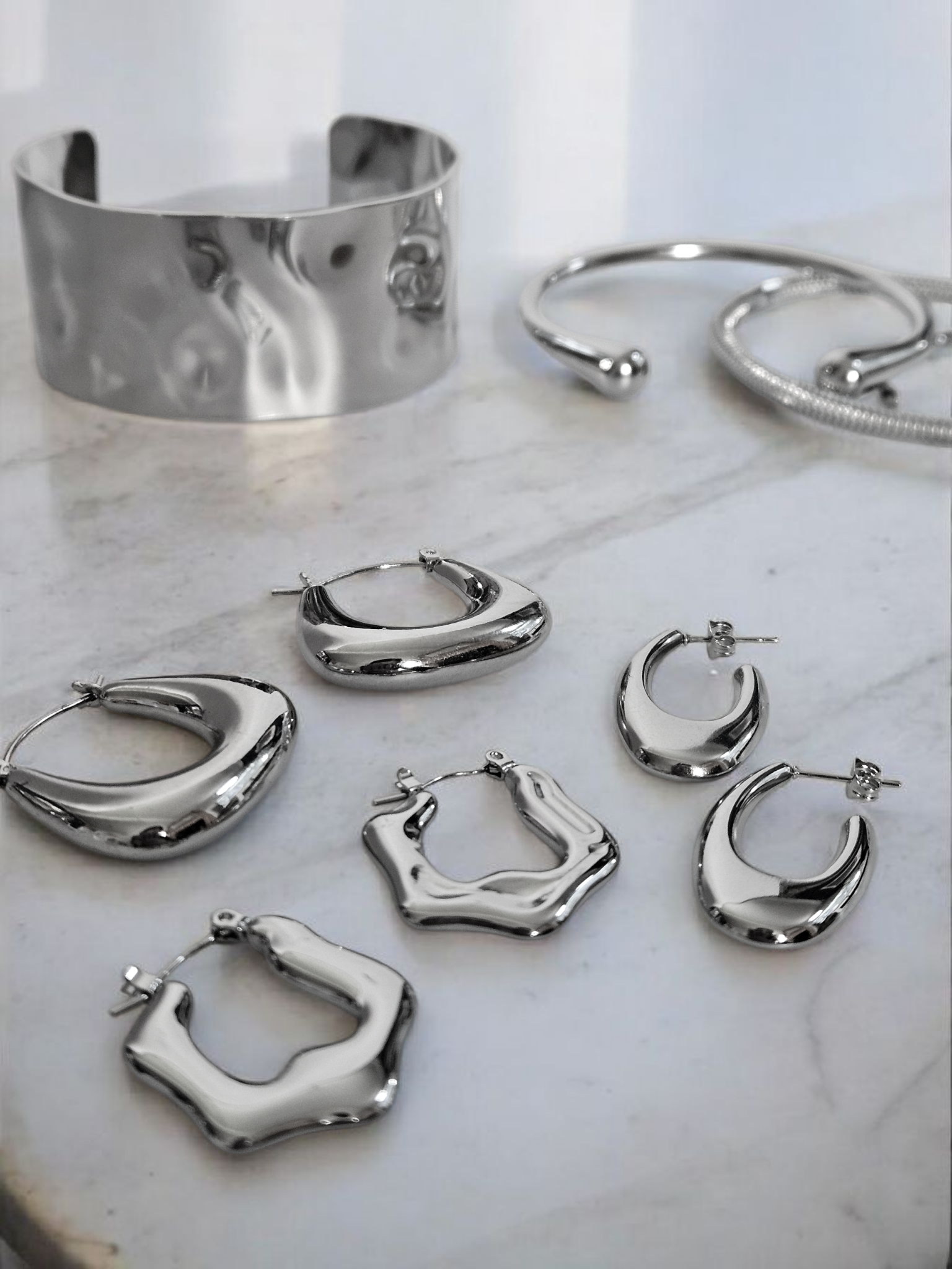 Our Silver Mira earrings aren't your basic hoops. With a wave like design, these earrings are the ideal day to day set that you can dress up or down. They are guaranteed to become one of your most worn pieces.