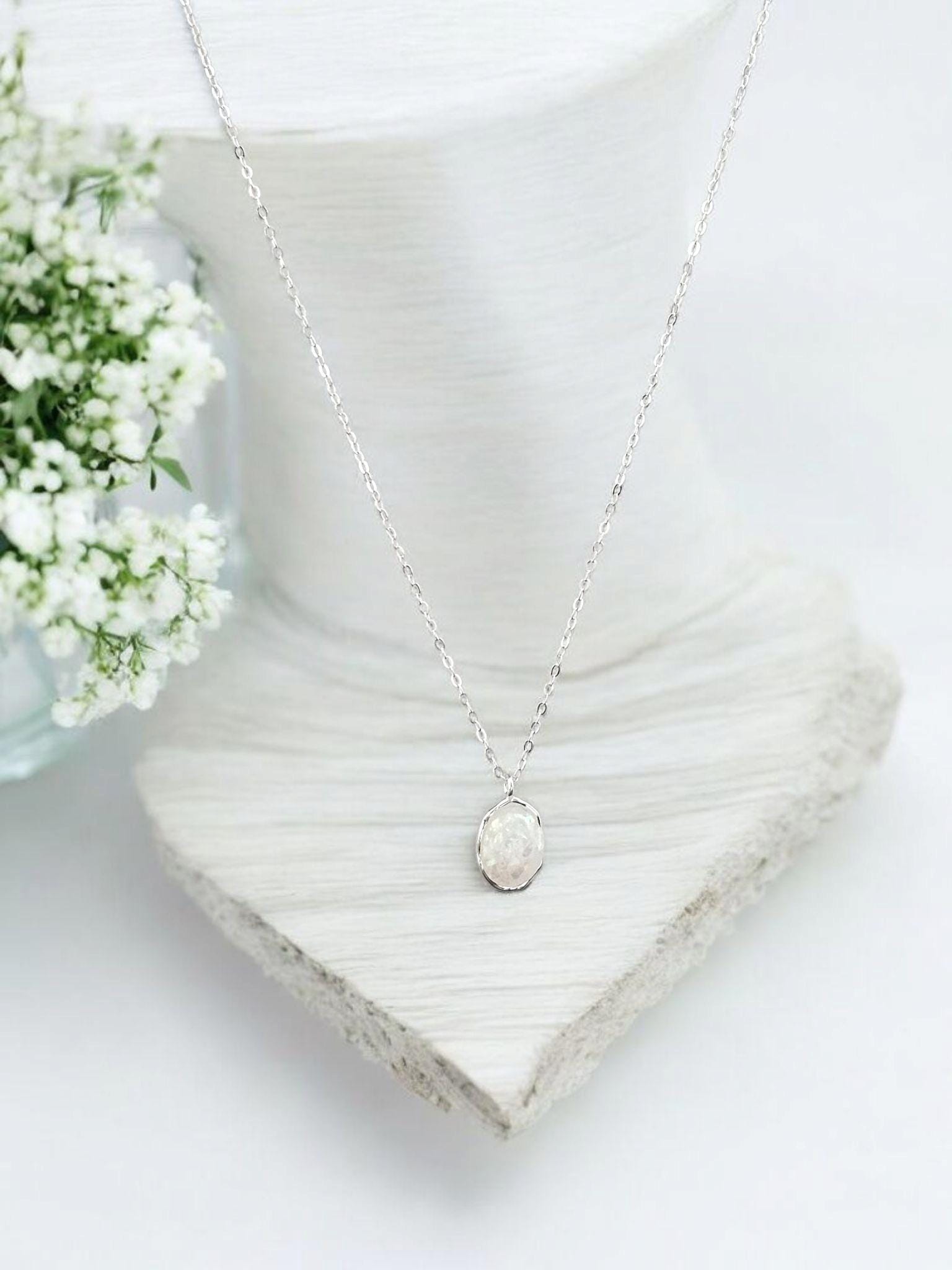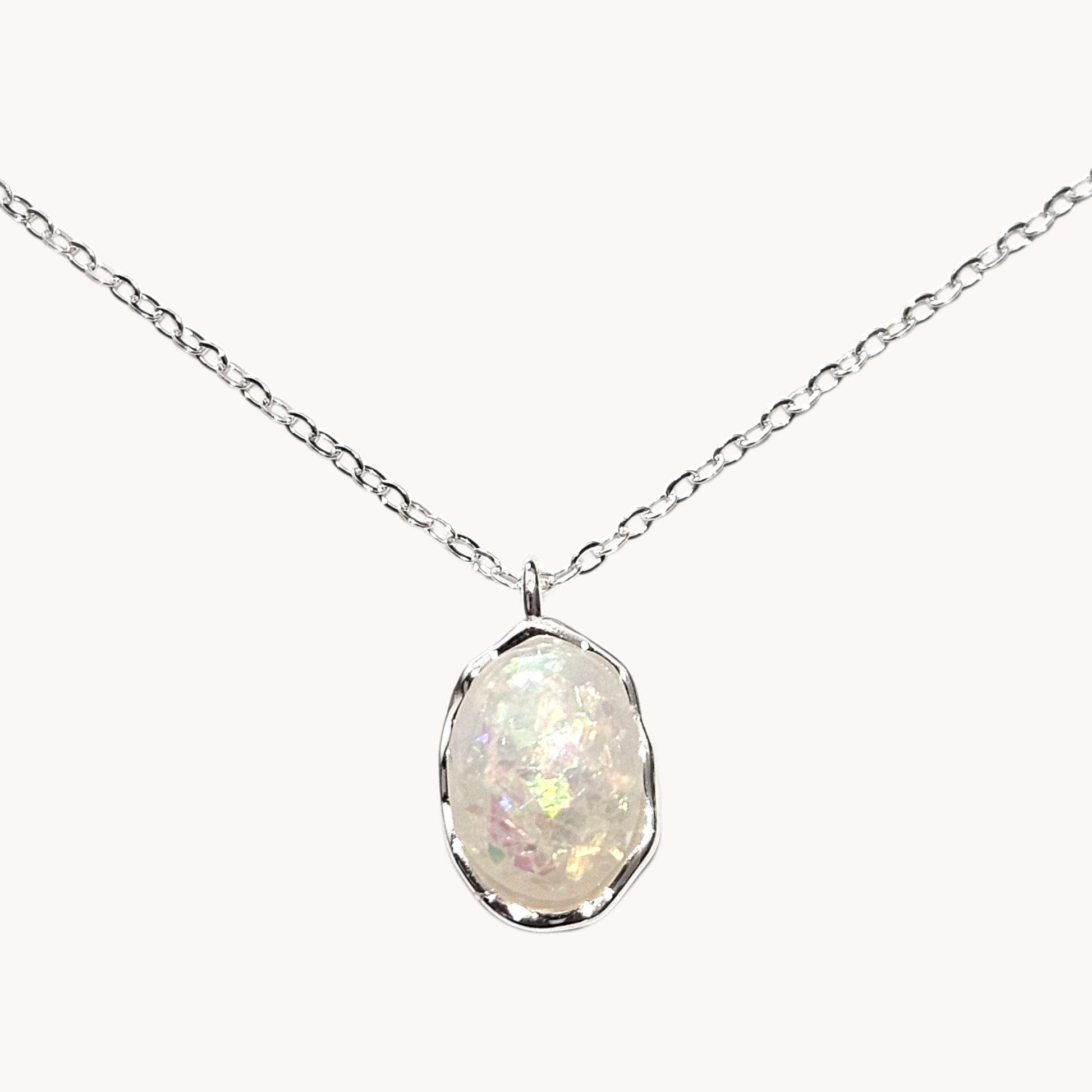 Our 925 Sterling Silver Elara necklace is pure moonchild energy. Featuring a glowing oval pendant that catches the light with soft, iridescent shimmer, it feels both mystical and effortlessly chic. This necklace is made for dreamers, stargazers and anyone who loves a touch of magic every day.