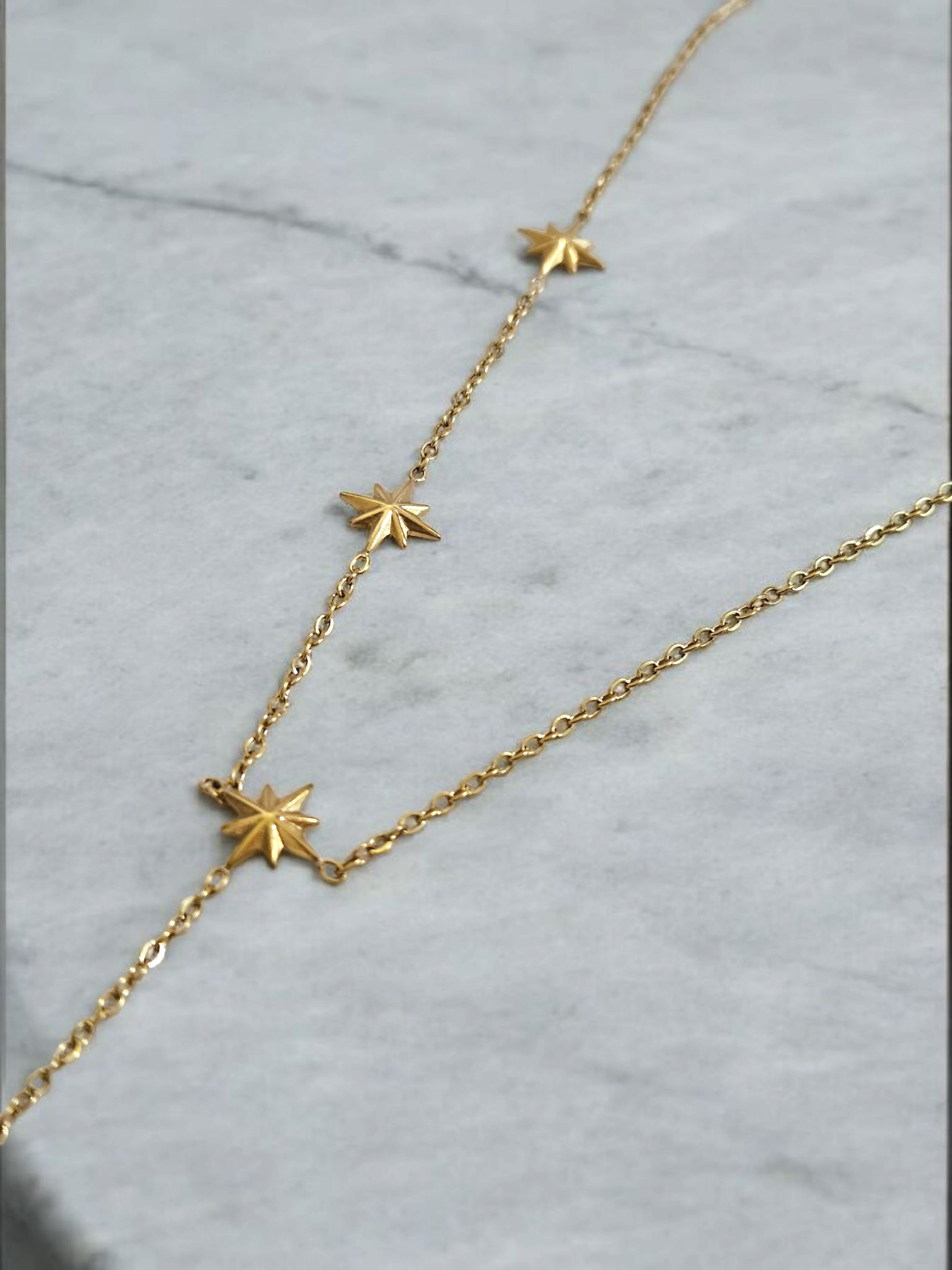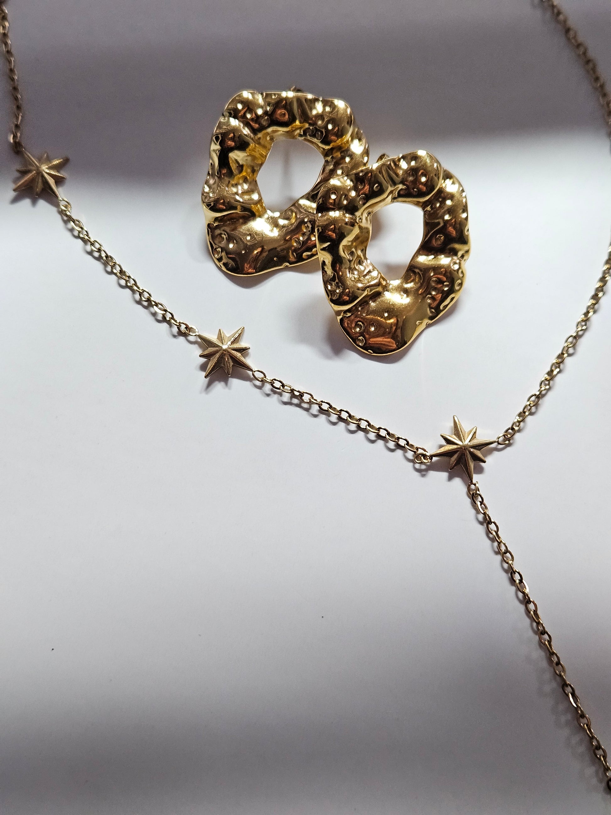 Our Orion Necklace with its tiny star charms scattered along a fine gold chain and graceful drop detail is made for low necklines, soft layers and golden hour selfies.