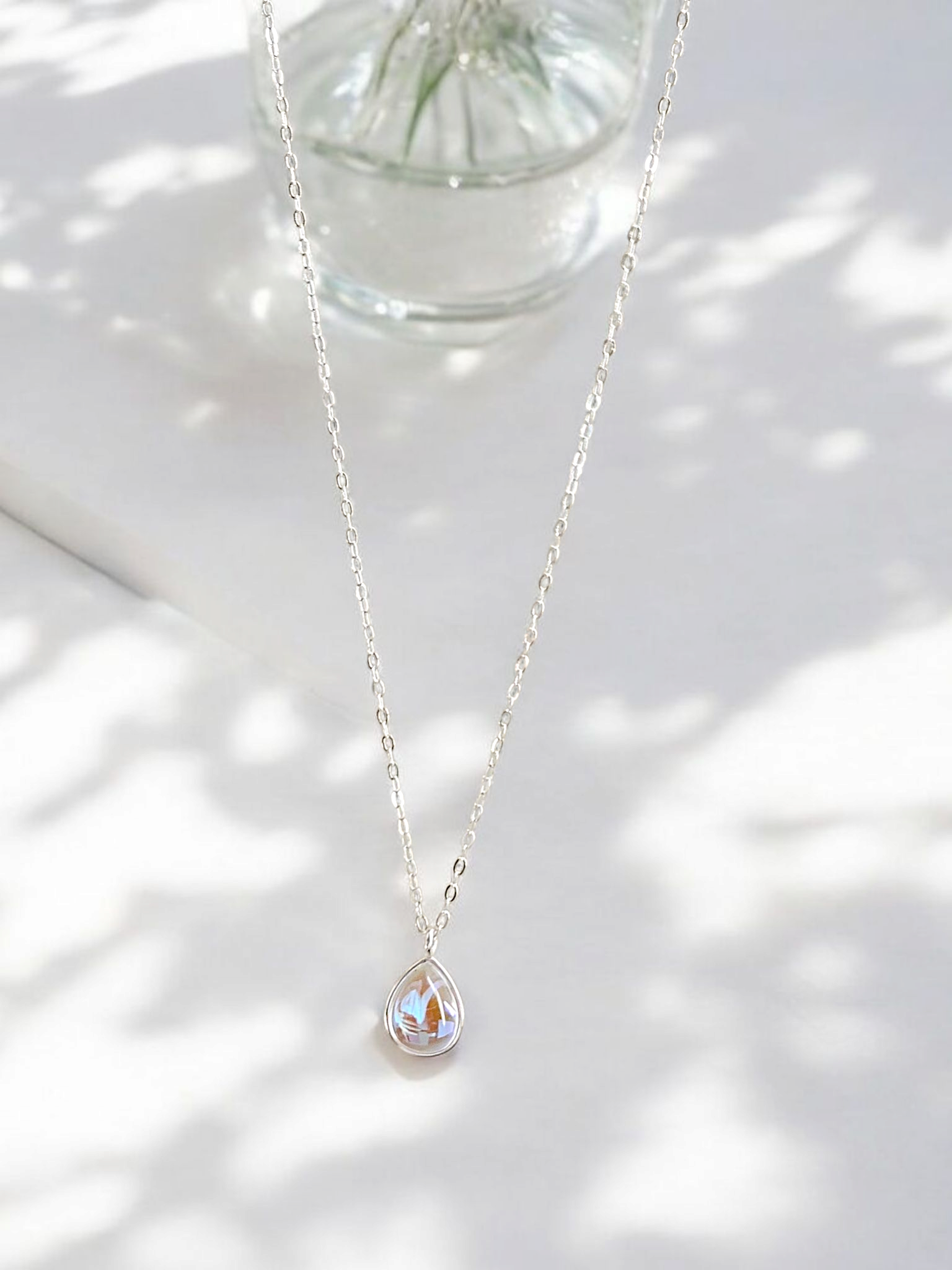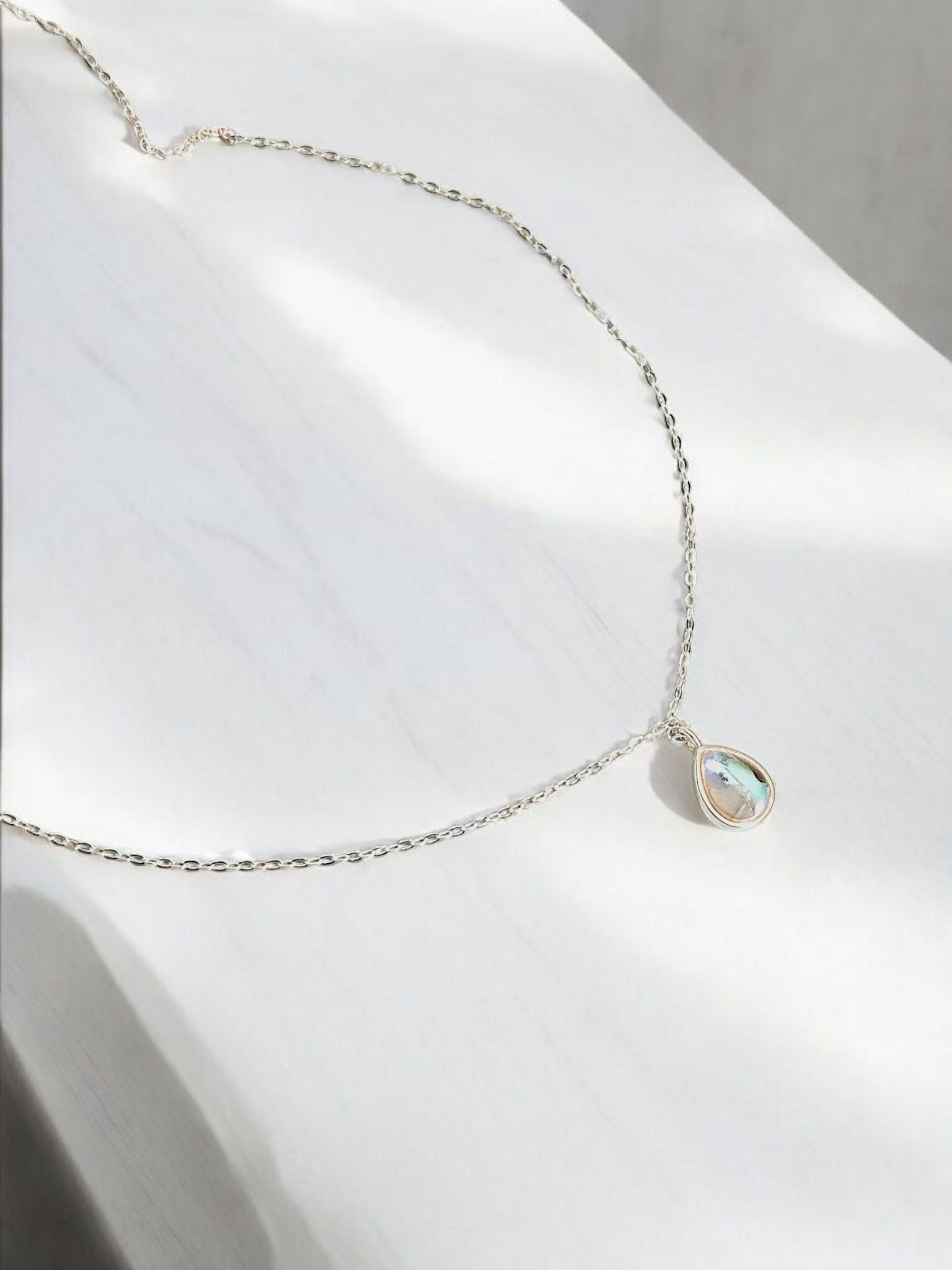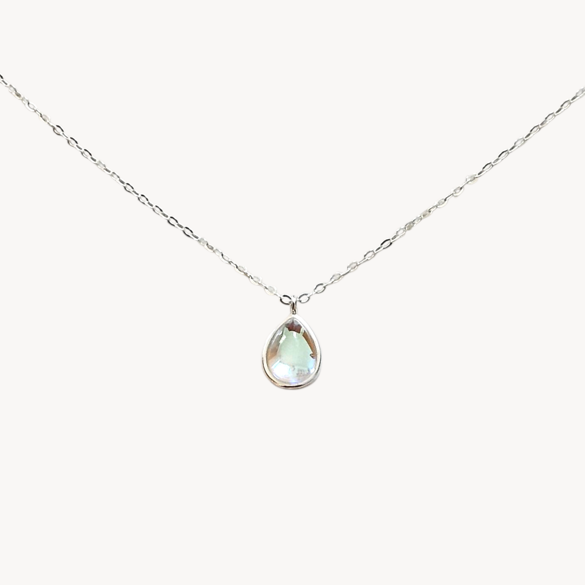 Our Tallulah 925 Sterling Silver Necklace features the most stunning iridescent water drop pendant, catching the light where ever you go! It simple, gorgeous and the perfect daytime accessory for silver lovers!